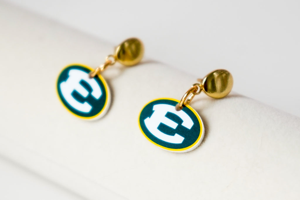 Show your St. Edward Eagles pride with these lightweight oval dangle earrings—the ultimate team swag for proud moms and fans alike! Crafted from durable gold stainless steel, these ear candy pieces deliver serious school spirit without the weight. Perfect for game days, casual outings, or whenever you want to rep your Eagles. Comfortable enough for all-day wear, these earrings are a fun way to celebrate your team in style.
